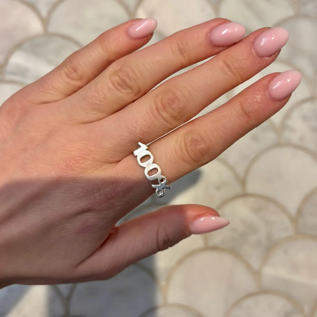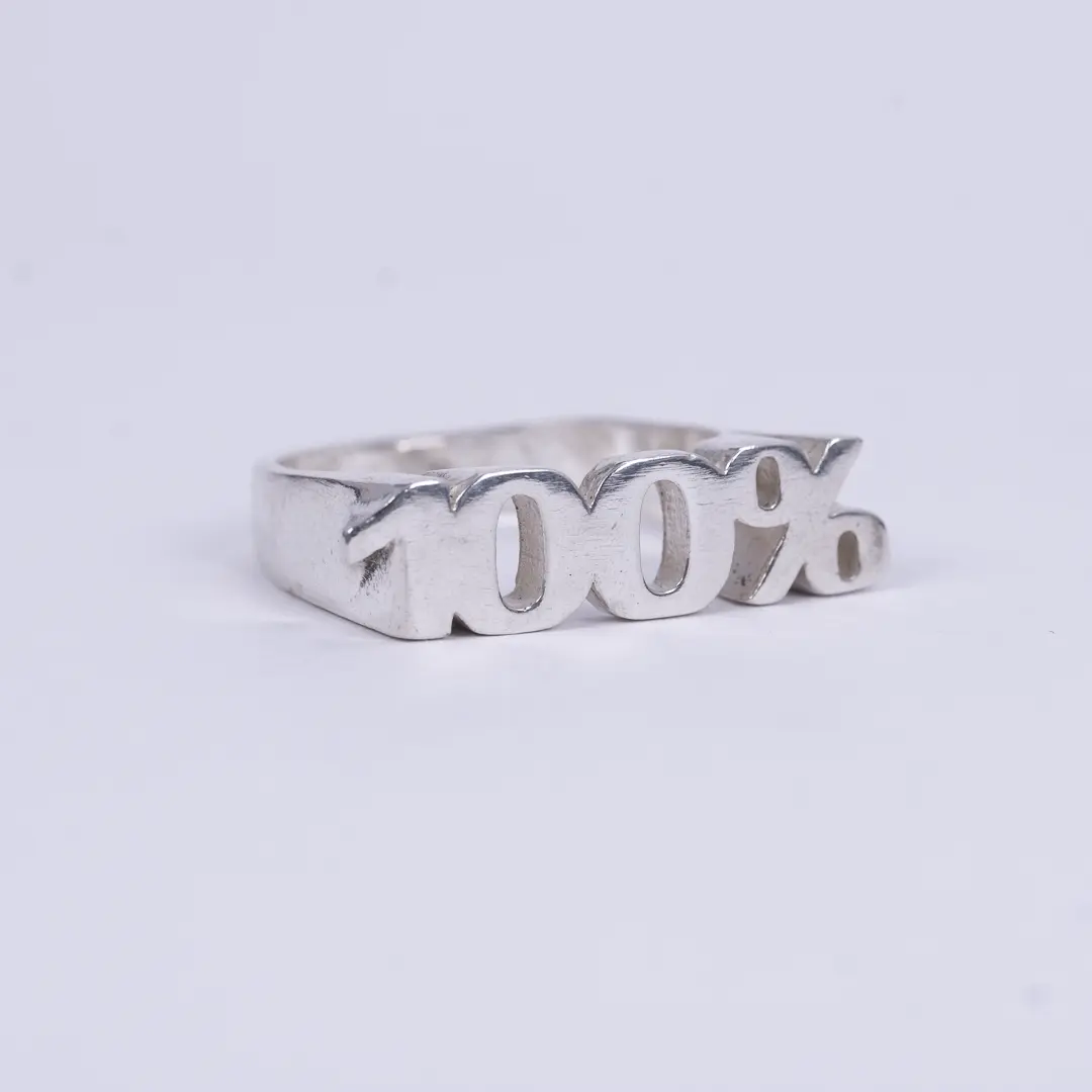 100%. Detta kan stå för vad du vill, superbra att bland med andra ringar. Tex med vår ”bejb” ring, 100% bejb ;). Ringen är ca 7 mm hög i texten och är gjord i sterlingsilver 925. En fin presentask tillkommer vid köp!