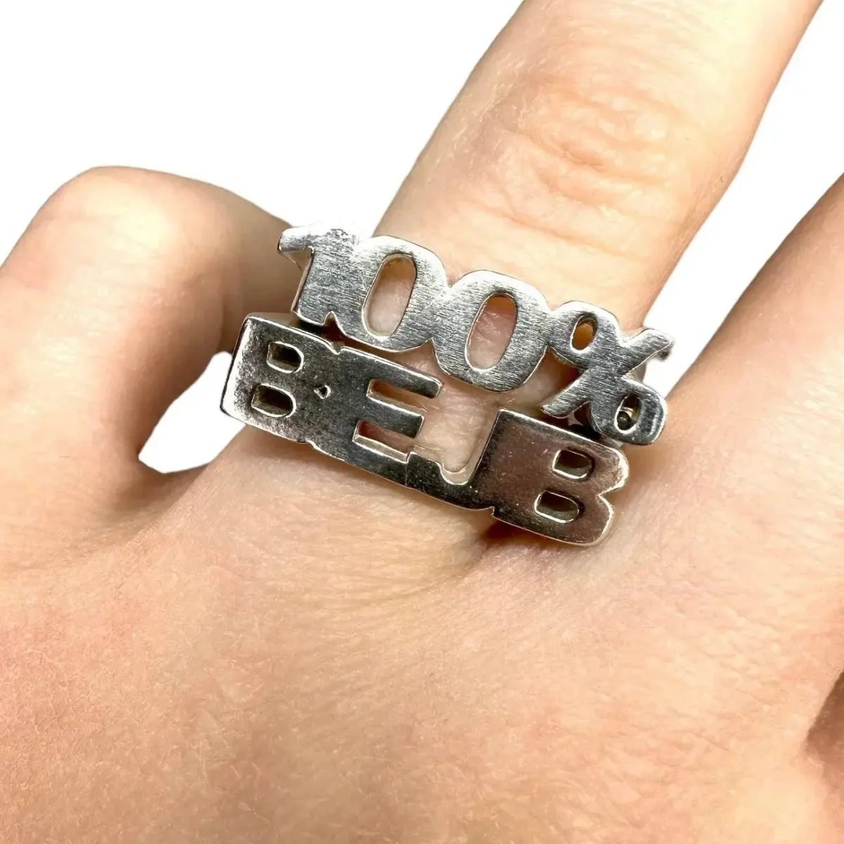 100%. Detta kan stå för vad du vill, superbra att bland med andra ringar. Tex med vår ”bejb” ring, 100% bejb ;).