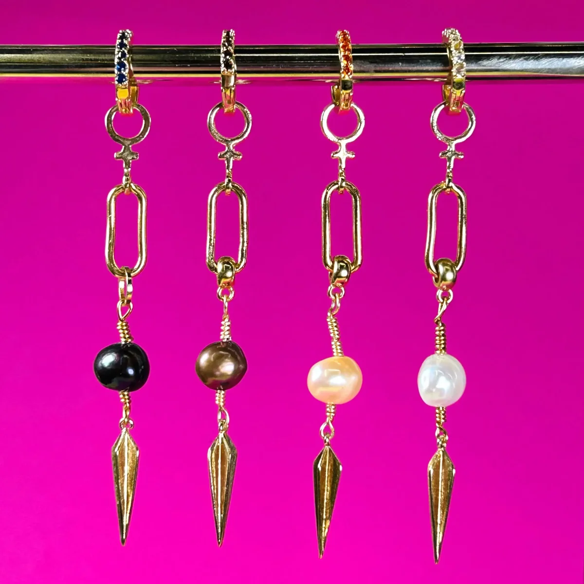 Dessa snygga coola pärlörhängen med venustecken är gjorda i gulddouble (18K på mässing) och med äkta pärla. Örhängena säljs styckevis så önskar du ett helt par lägger du två i varukorgen. Jag gör varje örhänge själv och alla pärlor är olika i form och storlek så varje örhänge blir unikt. Pärlorna finns i olika färger. […]
