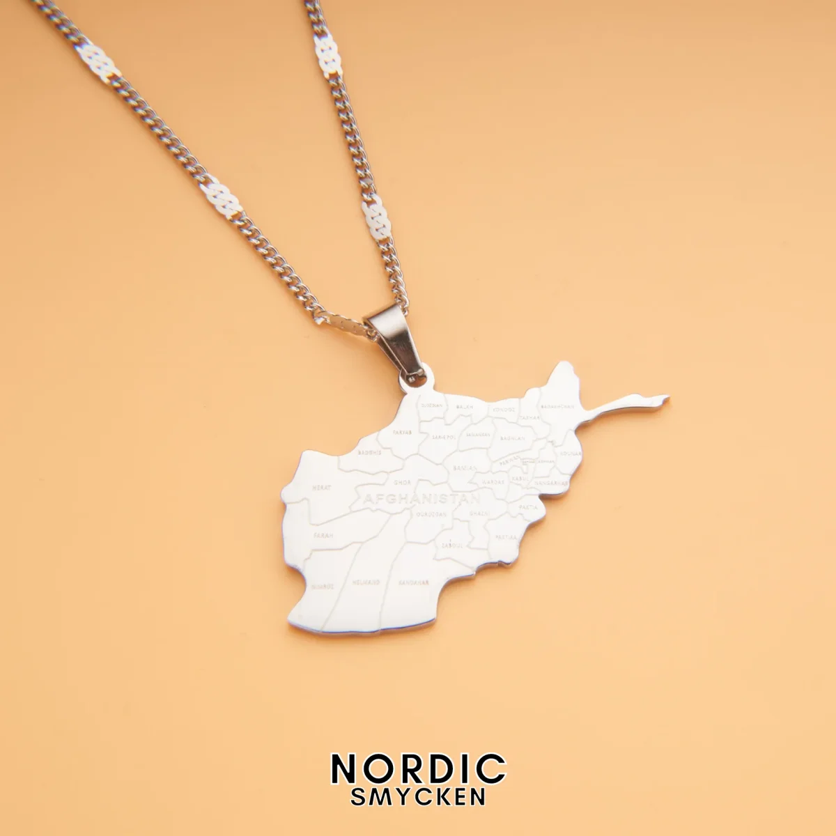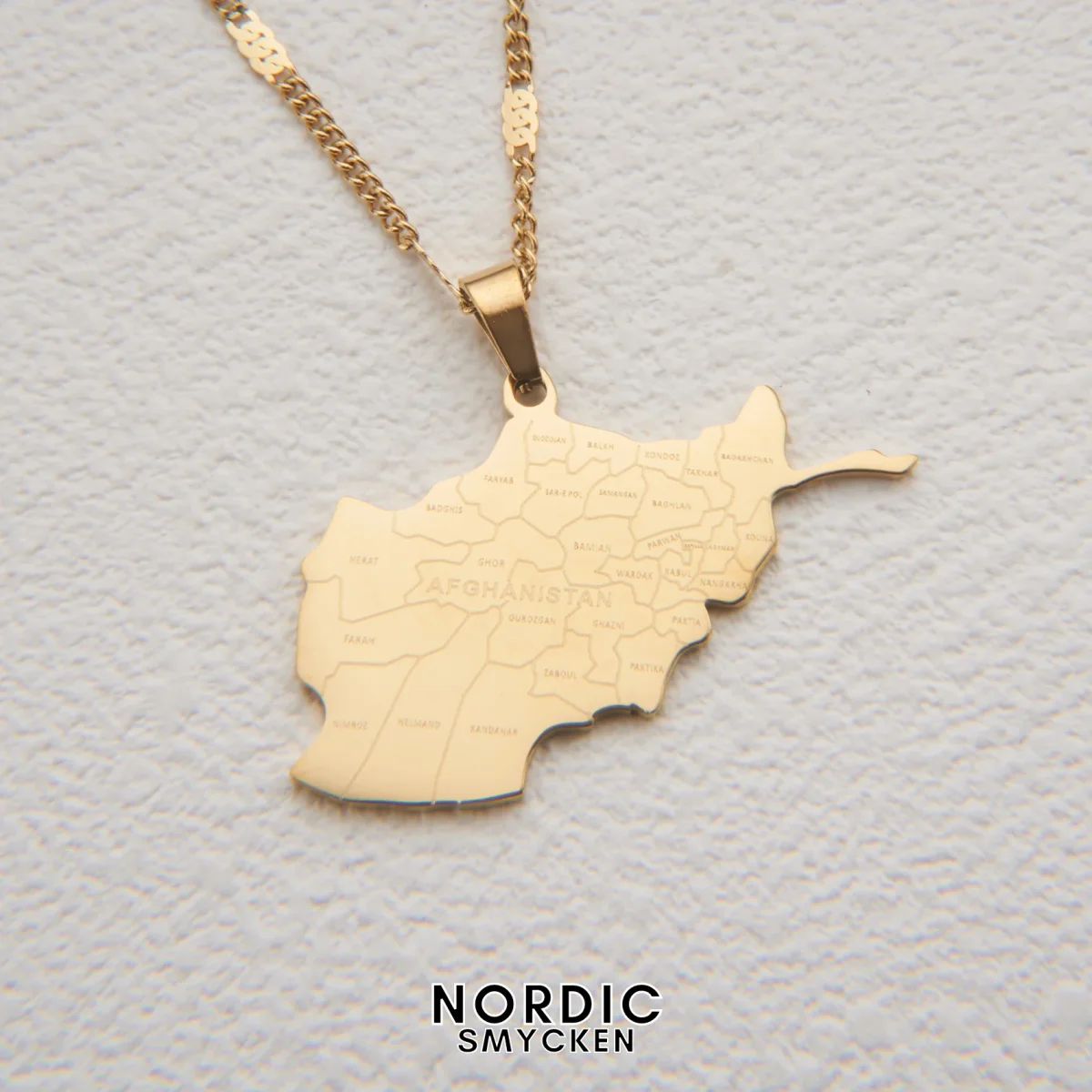 Detta halsbands huvudattraktion är ett hängsmycke som detaljrikt återskapar Afghanistans kartkonturer. Designen är genomtänkt för att fånga landets geografiska särdrag och hylla dess historiska och kulturella landskap. Det fungerar som en påtaglig påminnelse om landets stolthet och dess folkets uthållighet.