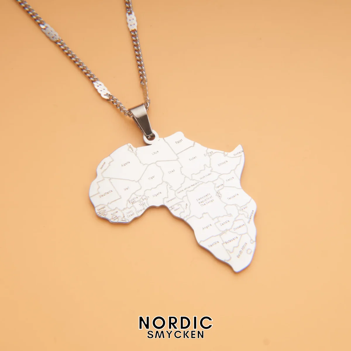 Det som särskiljer detta halsband är det omsorgsfullt designade hängsmycket som återger Afrikas geografiska kontur med finess. Det detaljerade hängsmycket framhäver kontinentens gränser och länder, och erbjuder en känsla av förbindelse till de många kulturer och folkslag som bor där.