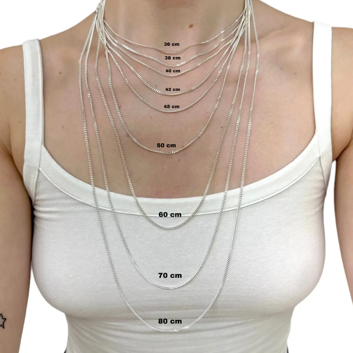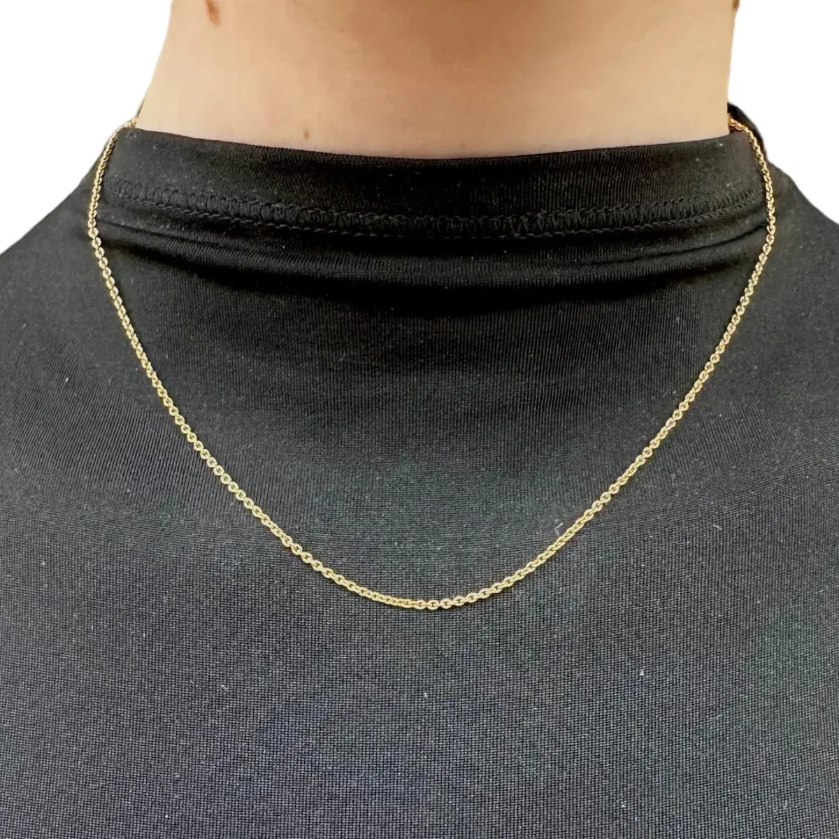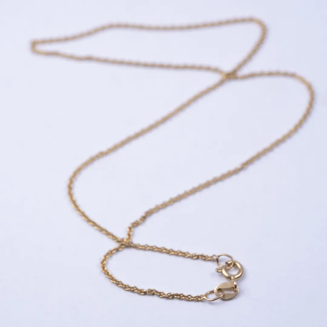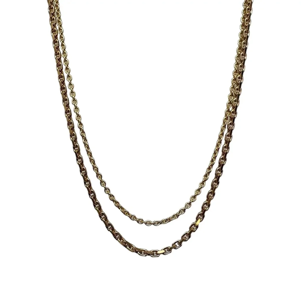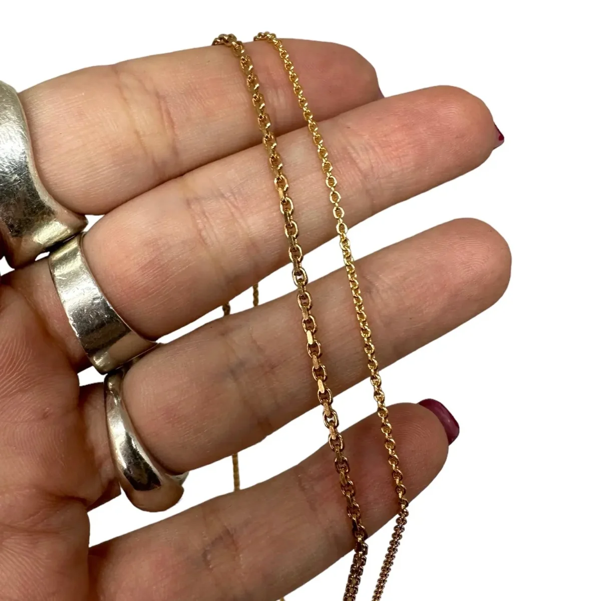 Denna kedja är gjord i gulddouble (18k på mässing) och finns i två tjocklekar. Tjocklekar: Tunn är 1,6 mm tjock (finns i längderna 36-90 cm)Tjock är 1,8 mm tjock (finns i längderna 42-80 cm)