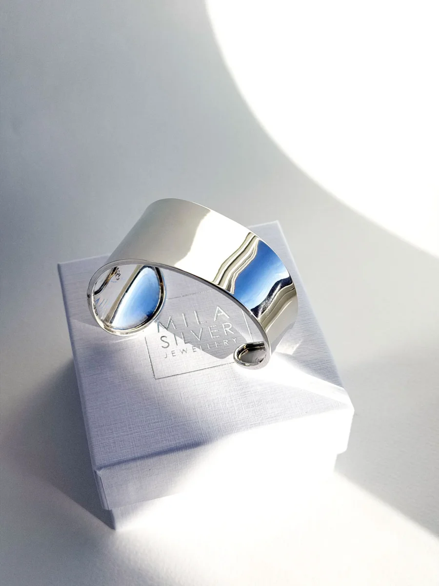 Vårt nya Arc Cuff är ett brett stelt silverarmband i minimalistisk design.