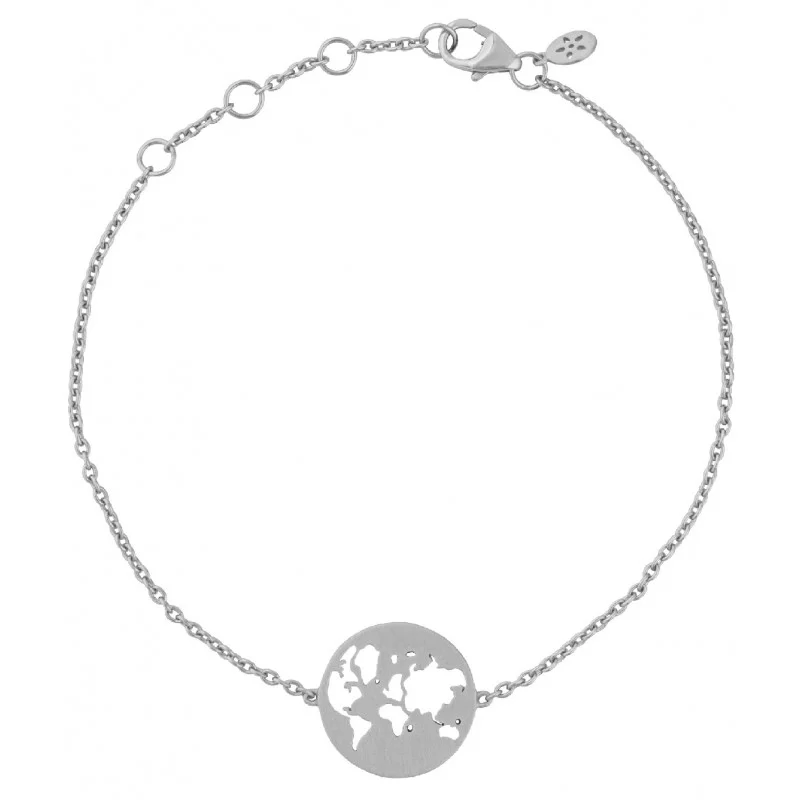Vackert armband av rhodinerat silver med fin tillhörande kedja. Designen är skapad som en hyllning till vår underbara jord. Älskar du att resa? Njuter du av att träffa nya människor, se och uppleva nya saker? Omfamna joden med hela ditt hjärta!
