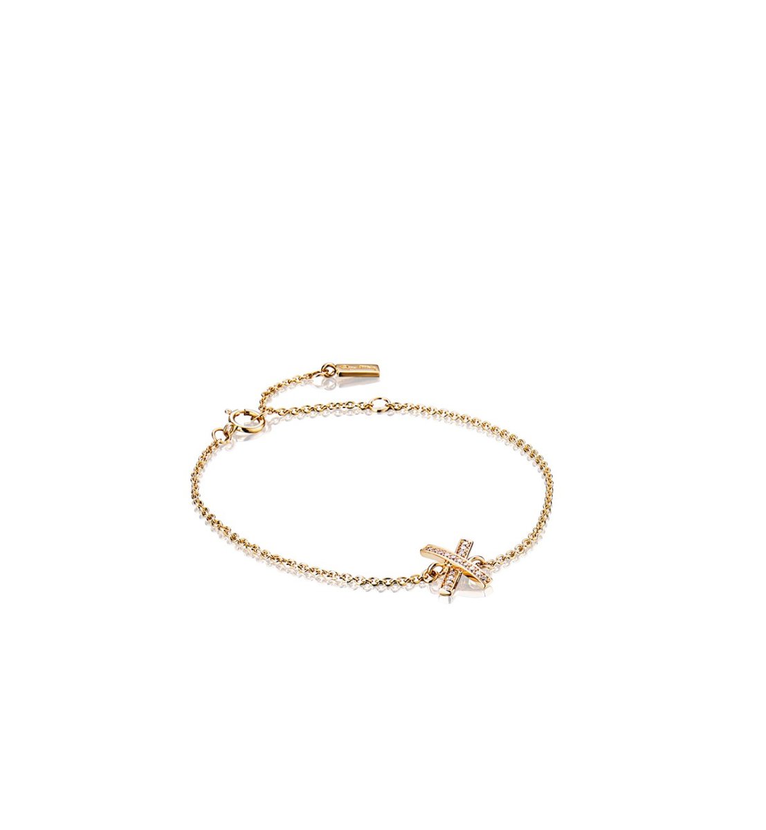 Vackert armband i 18k rödguld med en detalj formad som ett “X”, täckt med diamanter. EFVAS TANKE: “XX – kyssar på engelska, kyssar på svenska, kyssar på finska, kyssar på norska eller kyssar på italienska, jag kan aldrig få nog!”