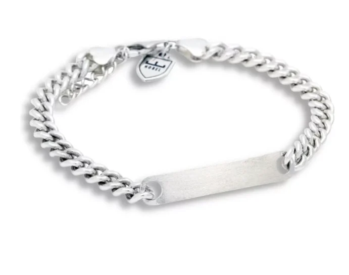 Armband med pansarlänk som har en större graverbar platta som gör att du kan göra armbandet unikt till dig själv eller som en unik och personlig present till någon annan. Armbandet är tillverkat i 925 sterling silver som gör smycket extra exklusivt och blänkande.