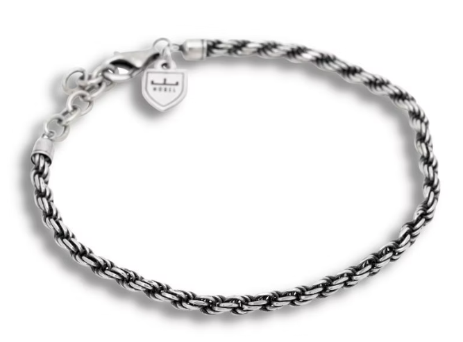 Ett tvinnat armband som liknar ett rep av små tunna trådar. Cordell kedjan är en klassisk kedja som med sitt karaktäristiska utseende. Armbandet har en något mörkare finish då det är tillverkat i oxiderat 925 sterling silver. Cordellkedjan finns även som halsband och tillsammans skapar de en komplett look.