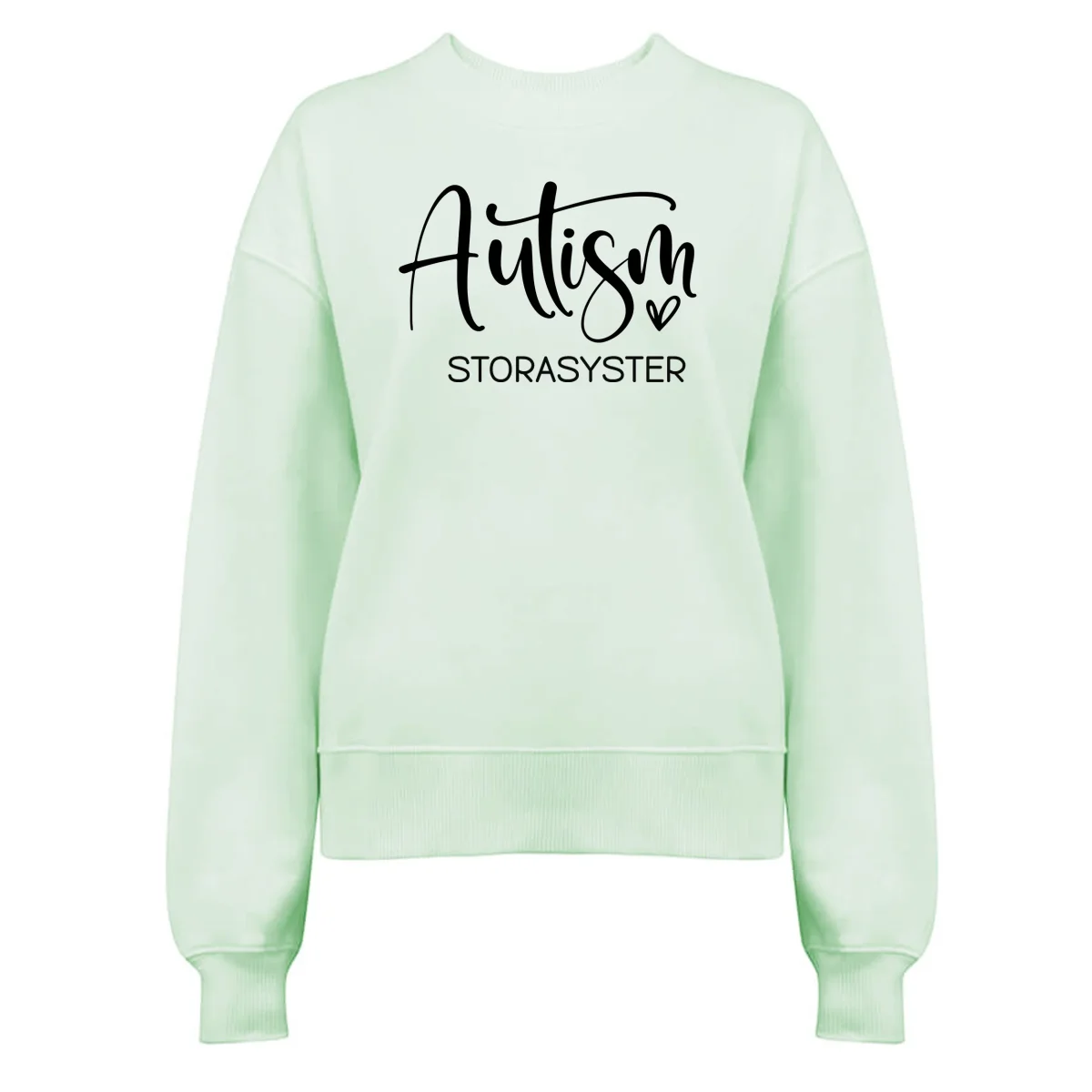 Storasyster med ett stort hjärta! Denna tröja är för alla systrar som stöttar och älskar någon med autism. En bekväm och stilren design som sprider ett viktigt budskap om sammanhållning och förståelse.