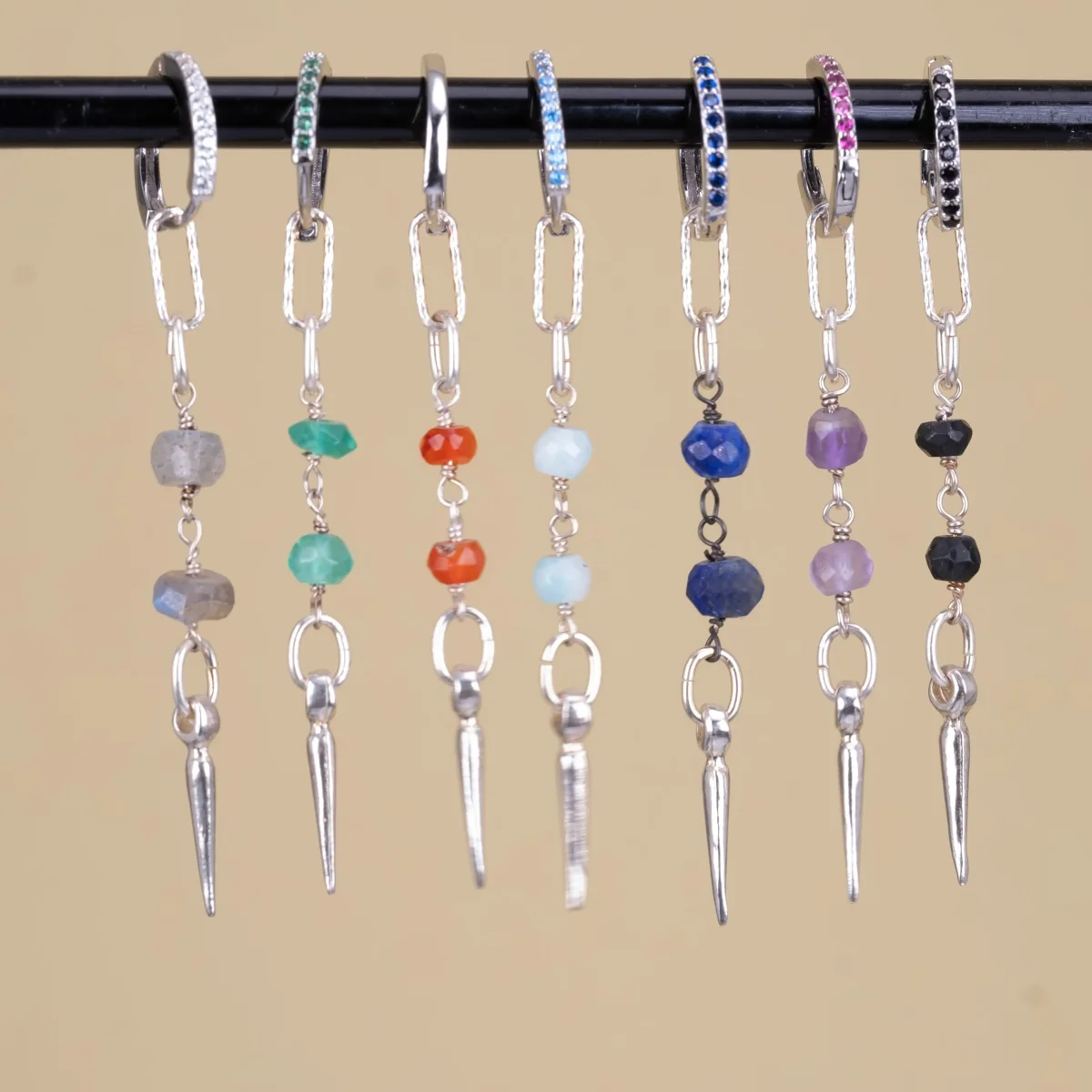 Beads & Spike Silver – stenörhängen