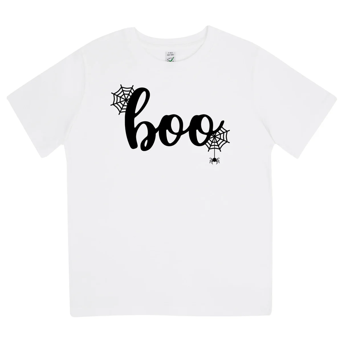 En gullig och enkel Boo Halloween T-shirt för barn. Tillverkad i ekologisk bomull som är mjuk mot huden och hållbar för lek och bus. Perfekt för halloweenfest, skolfoto eller godisjakt.