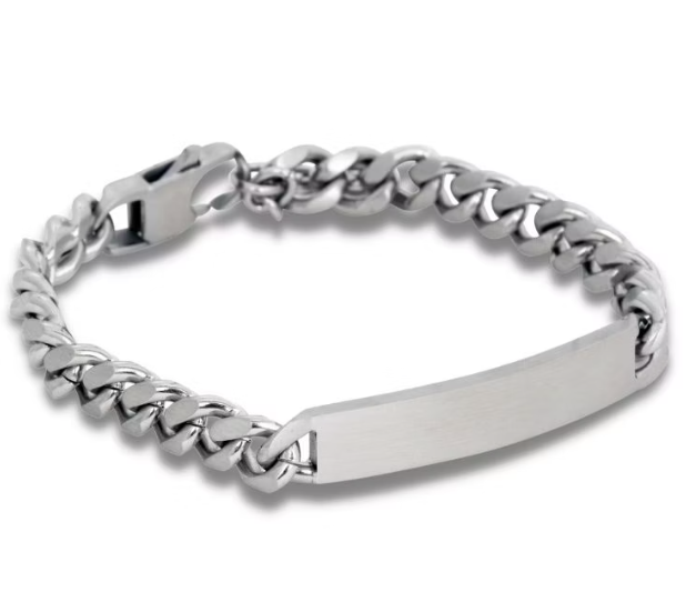 Detta herrarmband är en klassisk pansarlänk i något kraftigare modell med en 5 cm lång platta att gravera eller bara låta vara som den är.