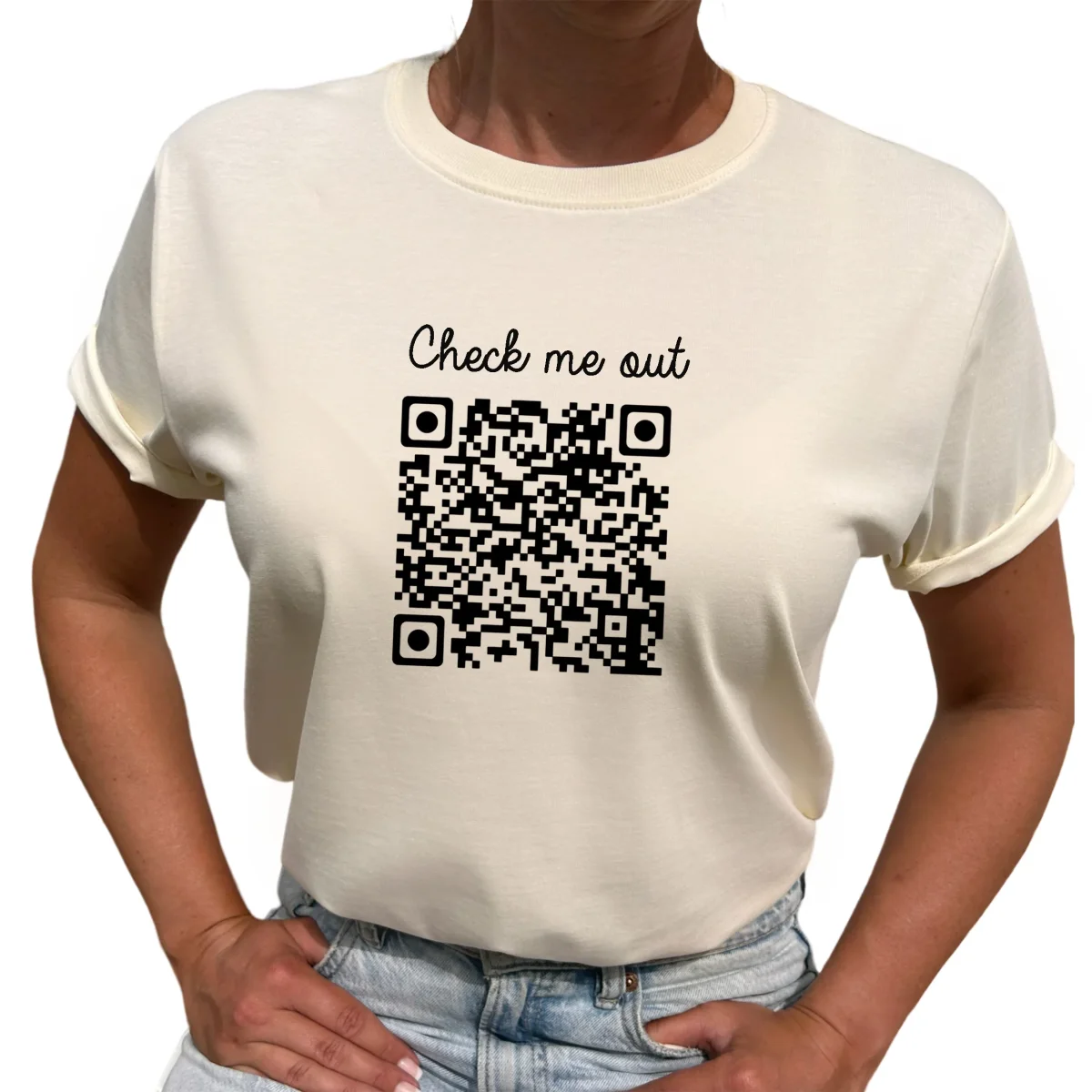 Motivet ”Check Me Out” QR kod T-shirt.