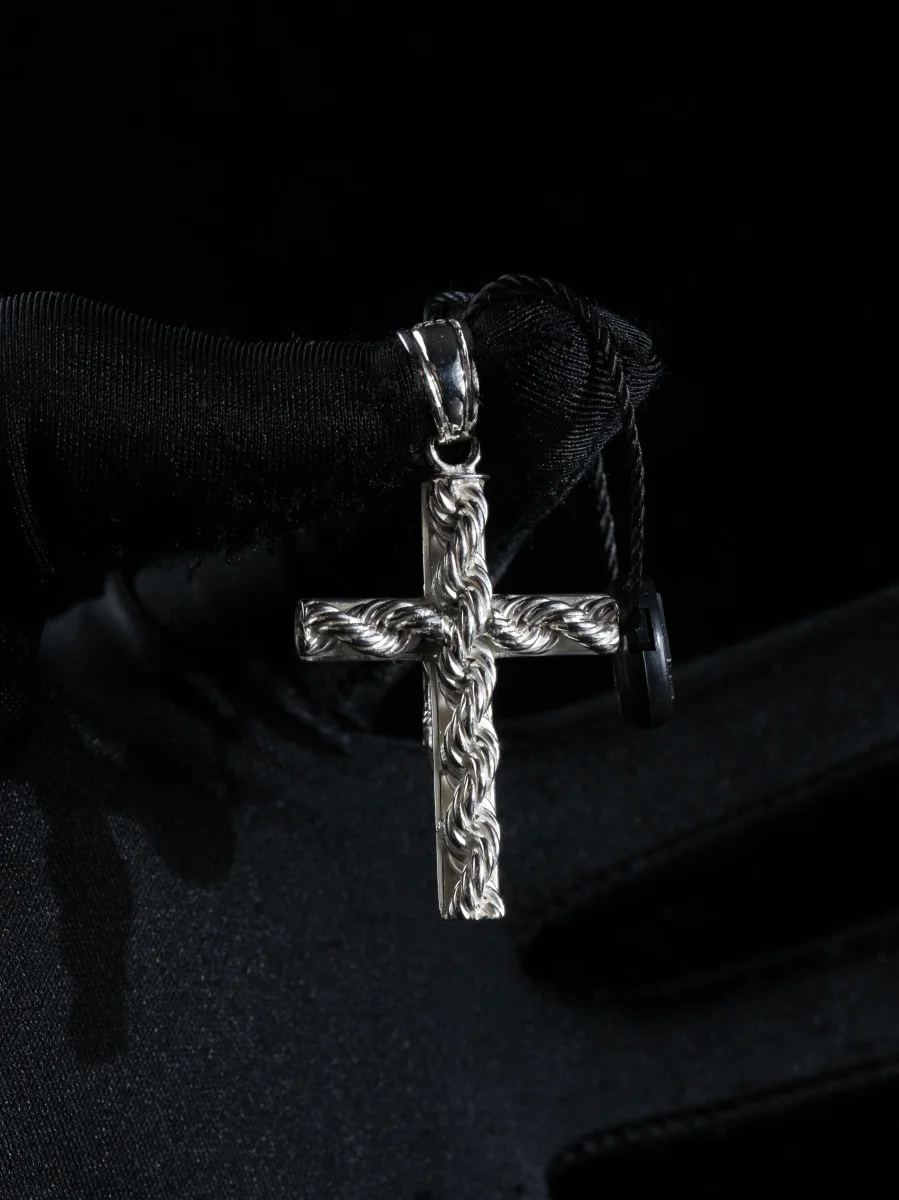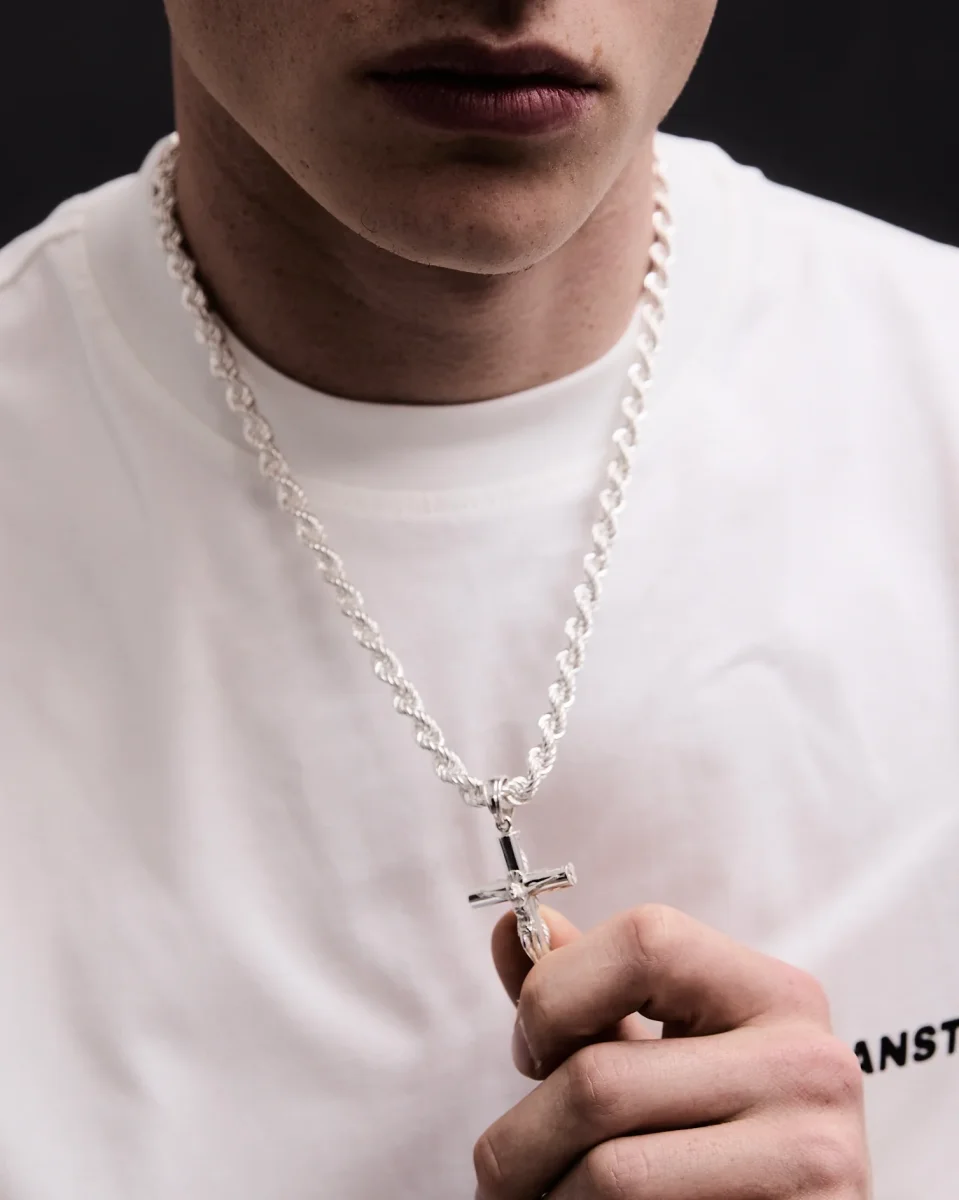 Cordell kors – Hängsmycke gjort av en 5-6mm cordelllänk formad till ett kors med Jesus på fronten. Tillverkad i 925 silver för hand. Polerad för att skina rejält. Ett smycke du kan ha en hel livstid!