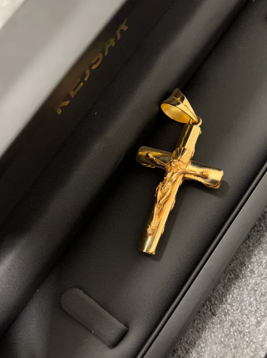 Kors! Krucifix! Jesus Hänge! Kalla det vad du vill. Men det går att beställa hos oss i 18K svenskt rödguld och väger ca 20g.