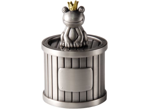 Fin dosa i tennfinish med söt grodprins på locket. Gör din gåva personlig med din egen gravyr!