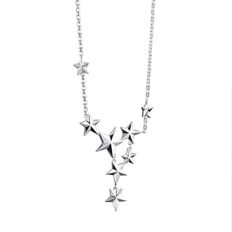 Halsband med formation av stjärnor i olika storlekar. Stjärnorna är sammansatta i ett fallande mönster och har en tredimensionell effekt.