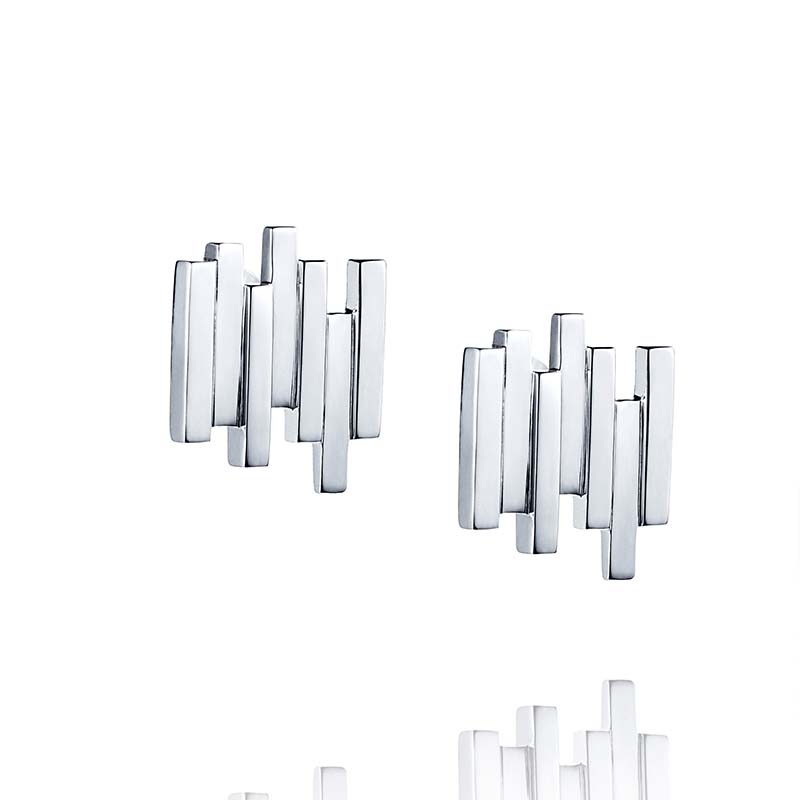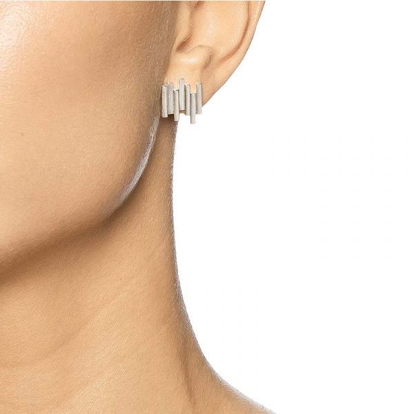 Örhängen som clips i återvunnet sterlingsilver formade som trappsteg där ljuset reflekteras i metallen.