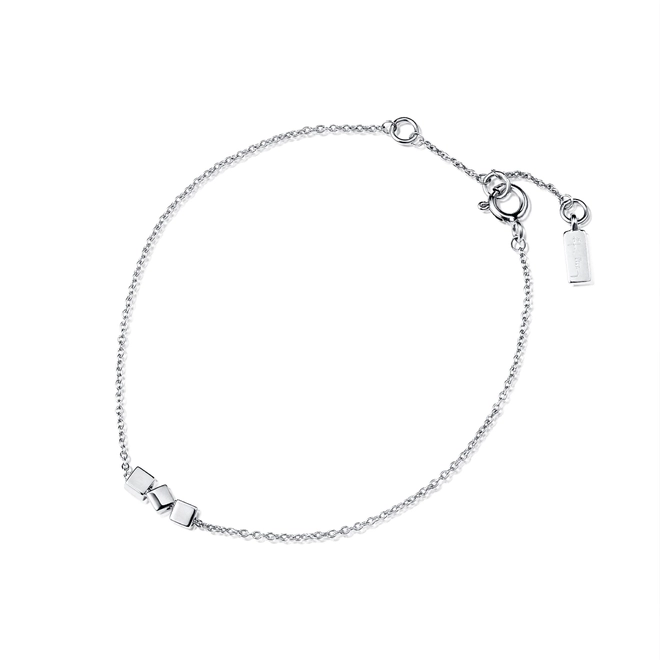 Armband i sterlingsilver med tre tärningar. Armbandet har justerbar längd: 16, 17,5 eller 19 cm. Dekor: 10 mm. Tärningar: 3x3x3 mm. ”Only lucky dices.”– Efva Attling