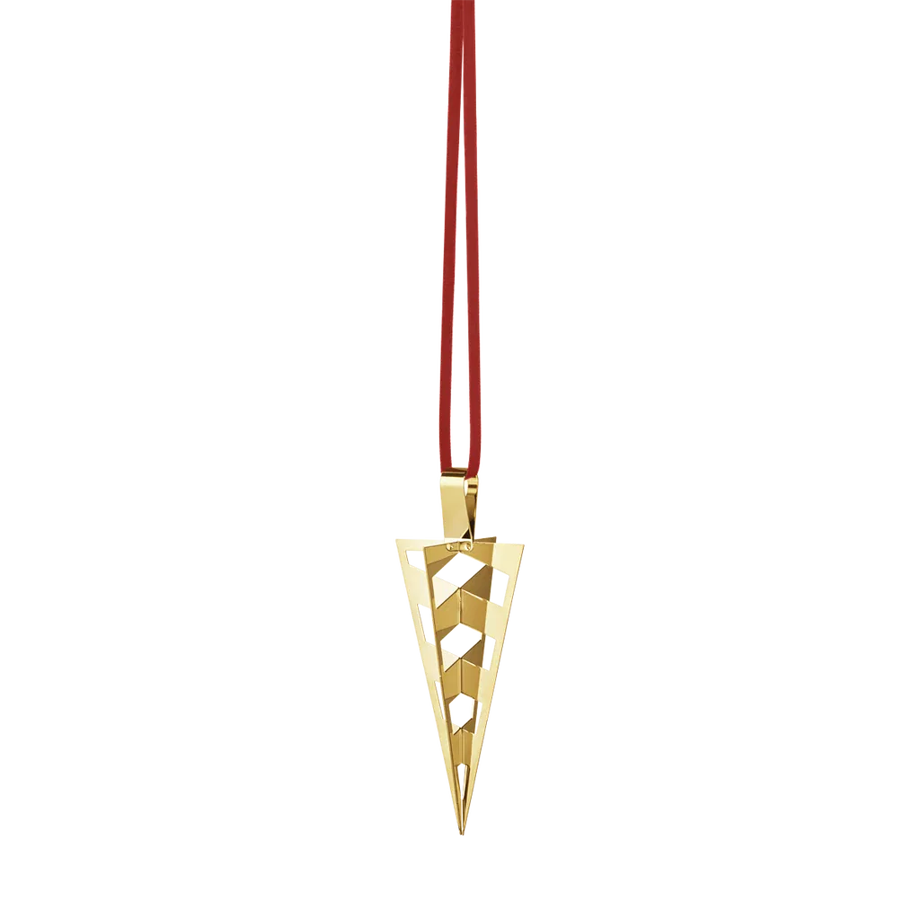 2025 presenterar Georg Jensen en elegant kollektion av julprydnader som fångar känslan av svunna jular och sprider en nostalgisk atmosfär i ditt hem. Det här designföremålet är inspirerat av den klassiska julstruten, en typ av julpynt som traditionellt görs för hand i färgat papper. Detta är en vacker tolkning i mässing pläterad med 18 karat gult guld av detta tidlösa julmotiv som väcker minnen av barndomens glädjefyllda jular.