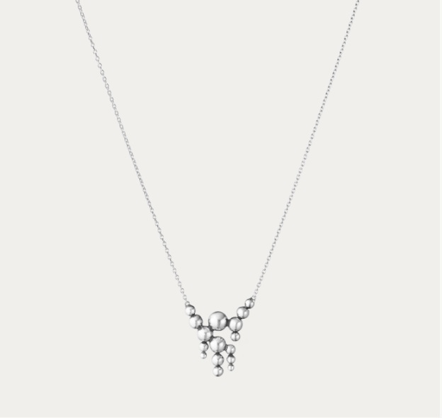 Fint halsband med silverkulor som faller vackert från en ankarkedja. Moonlight Grapes-kollektionen har hämtat inspiration från vindruvsdetaljerna från Georg Jensens tidiga Art Nouveau-föremål och är idag omarbetade till något helt nytt. Resultatet är både organiskt och modernt samtidigt som det refererar till det förflutna, vilket gör kollektionen till en tidlös klassiker.