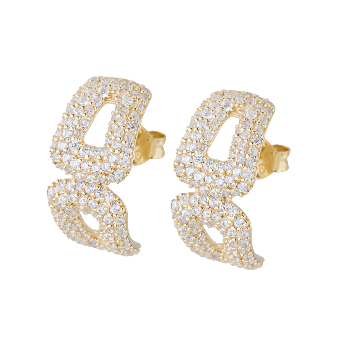 Classy Big – En ny, större variant av vårt Classy Örhänge. Detta örhänge är lite större och stiftet sitter i mitten av örhänget, därmed “kramar om” örat lite mer. Material: 24k guldpläterat 925 sterlingsilver. Sten: Cubic zirconia. Tjocklek på plätering: 3 micron (µm) Storlek: Höjd: 17mm Bredd: 8mm