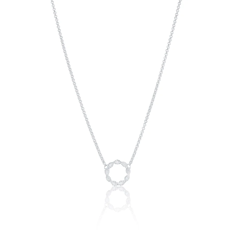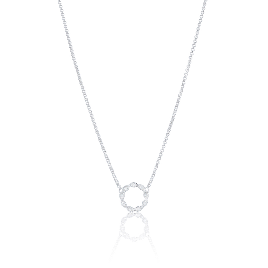 Glittrande halsband med vita cubic zirkonia-stenar. Kollektionen är designade till förmån till vården, där delar av försäljningen går till välgörenhet.