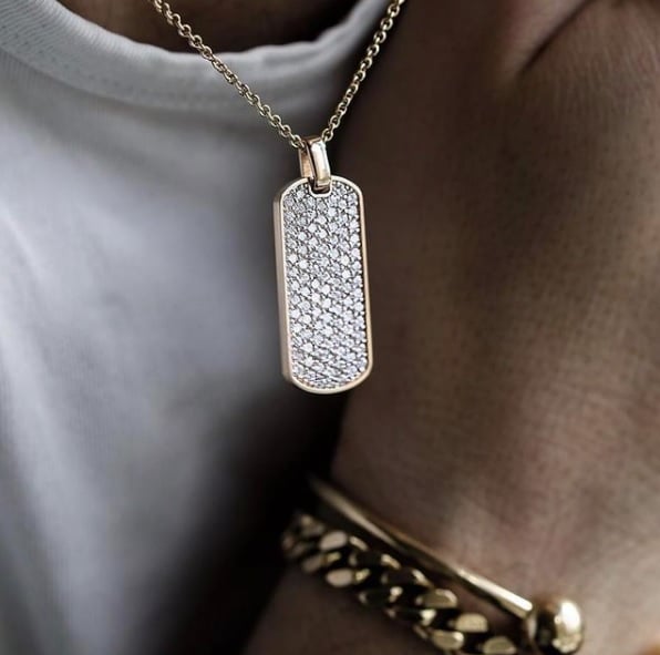 Detta glittrande hänge är ett riktigt statmentsmycke som talar för sig själv. Hänget är prytt med 98 stycken 0,02 ct diamanter som glittrar vackert och fångar upp ljuset i omgivningarna. På baksidan av hänget finns Martin & Michaels signaturstämpel samt utrymme om man önskar att gravera hänget. Diamanter: 98 st x 0,02 ct. Totalt 1,96 ct. Kvalitet: TW/VS Kedja medföljer EJ. De första Martin & Michael smycket skapades av en ren slump då smycket inte existerade på marknaden när Michael kontaktade Martin för ett par korsörhänge i 18 karats guld med diamanter. Där föddes idén till ett eget varumärke. Martin & Michael släpper nu sin första kollektion. Smyckena visar en del personlighet samtidigt med ett visst trendspråk, de är handgjorda och varje smycke har en egen prägel och historia. Det är genuina & rustika smycken som håller att användas dagligen och de ska vara med att forma & skapa historia med dess bärare. Vi delar tanken med smycket ska få vara med under din tid och få tillsammans med dig skapa minnen som bara ni delar.