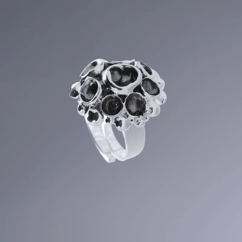 Denna omlottring i Sterling silver från serien Västkusten har en form av havstulpaner. Topp ø 20 mm.