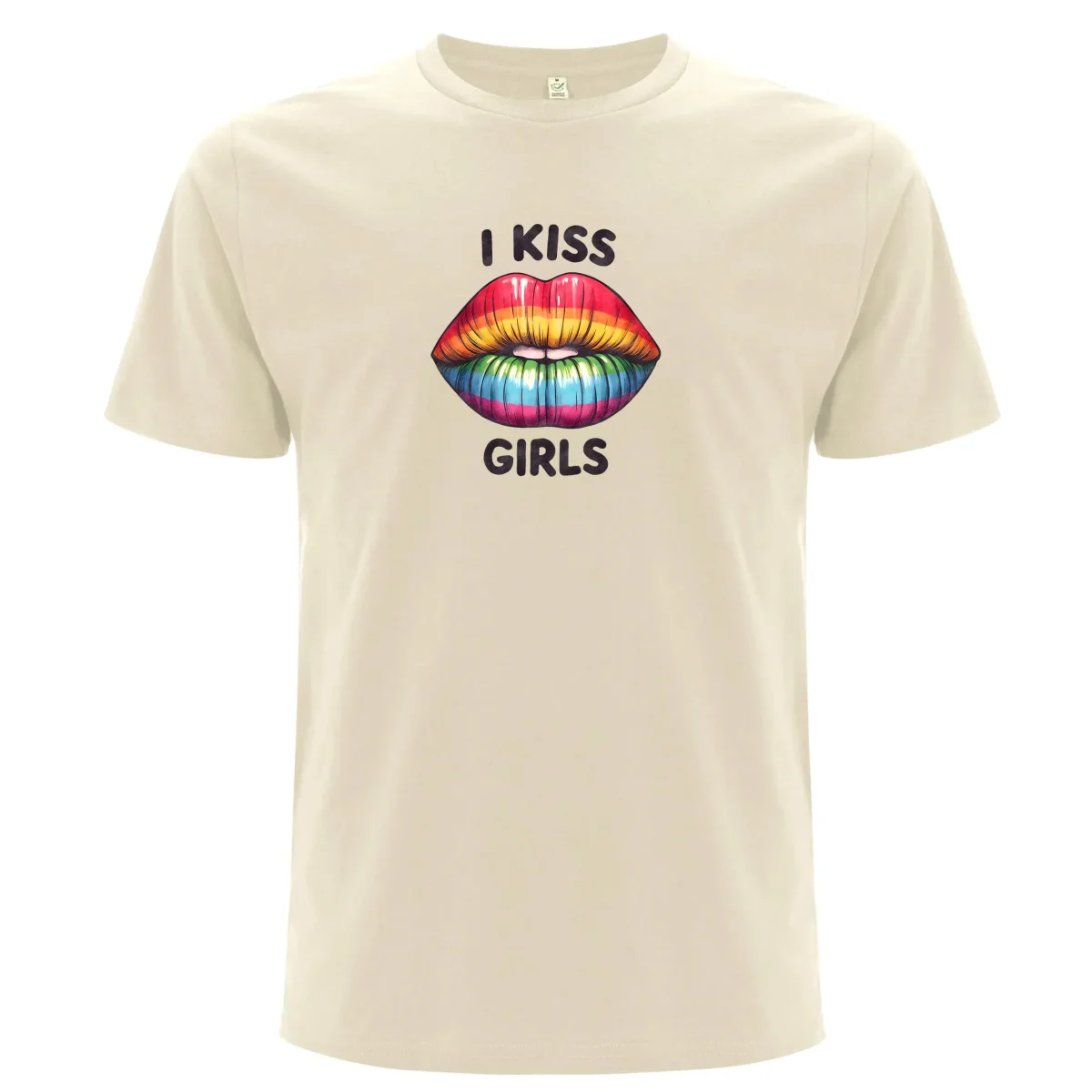 I Kiss Girls – Pride T-shirt med regnbågsläppar (Unisex)