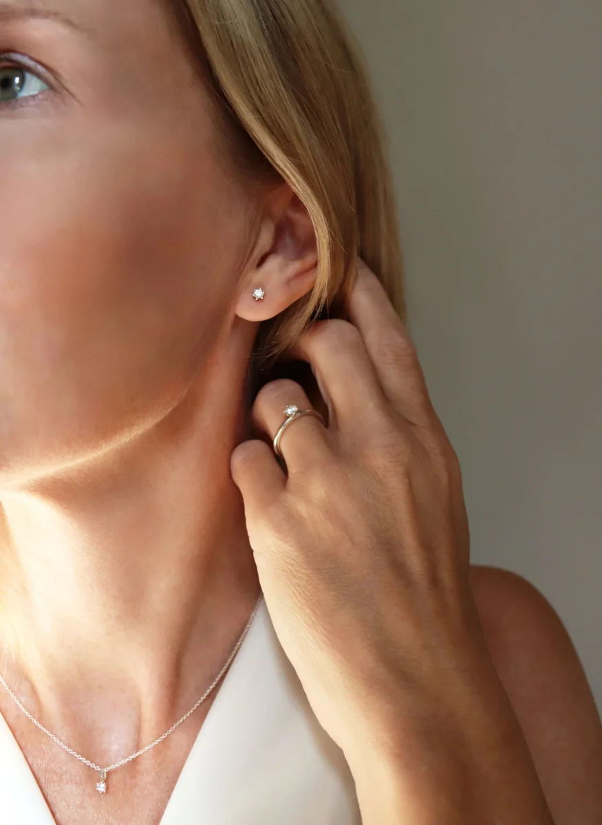 Julie diamantörhängen är av hög kvalitet och passar till allt. Matcha med andra örhängen om du har flera hål och bär tillsammans med dina silversmycken.