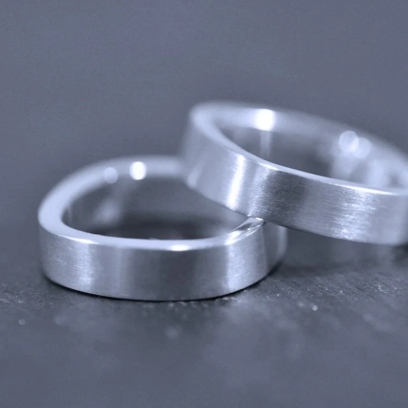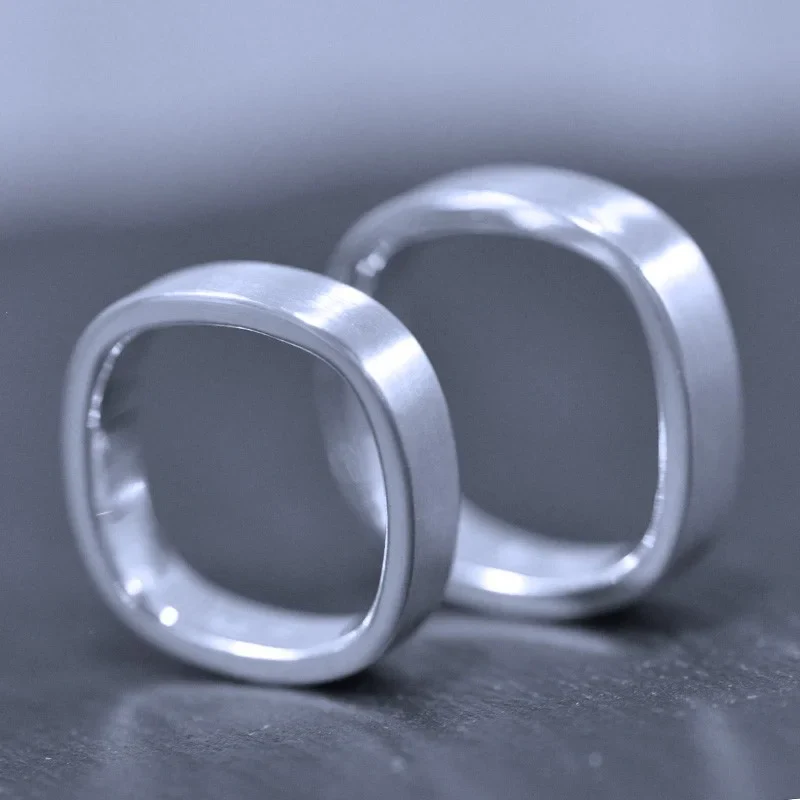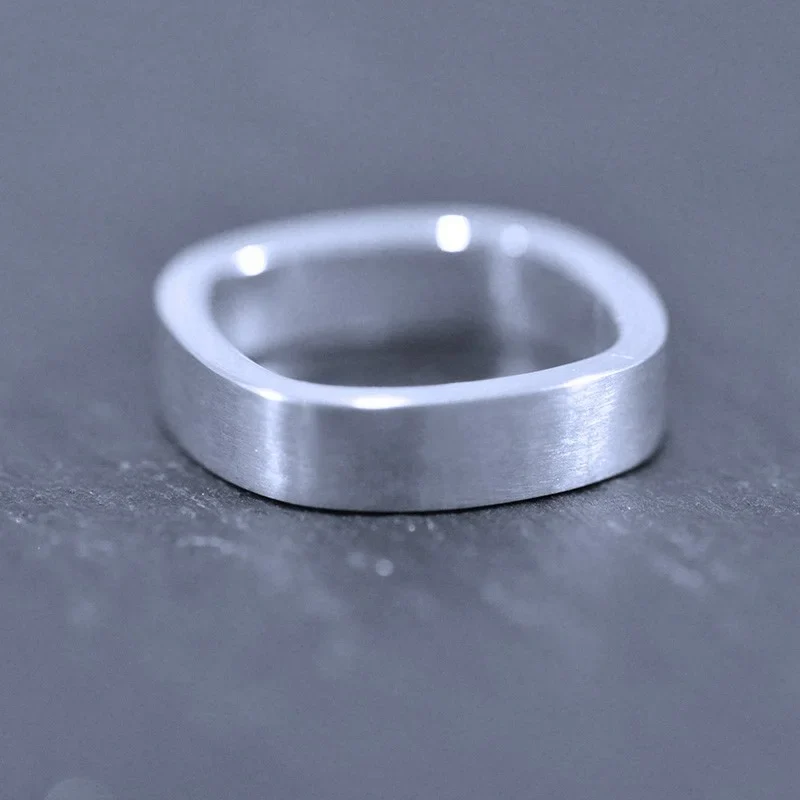 Ring i sterling silver från serien Kvadrat. Mattborstad yta med blankpolerade sidor. Bredd 5 mm.
