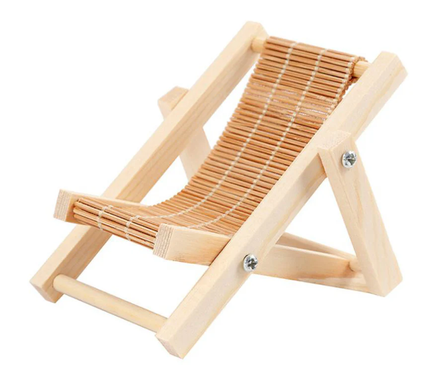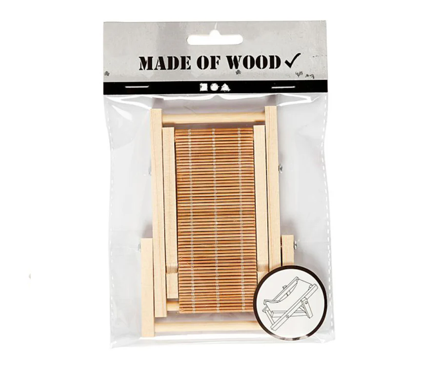 Miniatyr – Solstol i trä, miniatyrstol / strandstol för dockhus