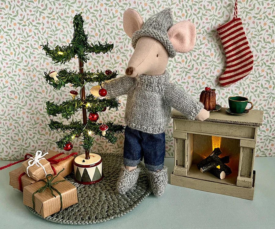 Jul i mushuset! Låt alla möss få bli små tomtar med denna lilla gullig tomteluva som är handstickad i en härlig grå färg och i finaste merinoull. Finns i tre olika storlekar för mamma mus / pappa mus, storasyster mus / storebror mus samt lillebror mus / lillasyster mus. Sitter stadigt på mössen och hål för öronen finns för att skapa en gullig look och bra passform. Luvan går också att vika upp så det blir en fin kant på luvan.