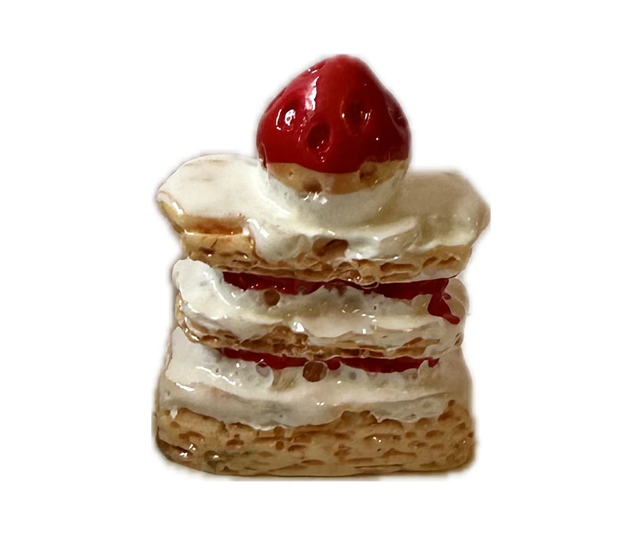 Mumsigt fina våfflor med grädde och jordgubbssylt samt en jordgubbe på toppen. Miniatyrmat för dockhuset eller tittskåpet. Verklighetstrogna våfflor som passar bra för möss och kaniner från Maileg, men även andra dockor. Jättefina att ha som dekoration i dockskåpet på tallriken eller serveringsfatet. Mat i miniatyr är trevligt att leka med, låt fantasin flöda när dockor, möss eller kaniner får smaka på goda bakverk. Ta med på utflykten i en korg och låt det bli en mumsig våffla på stranden.