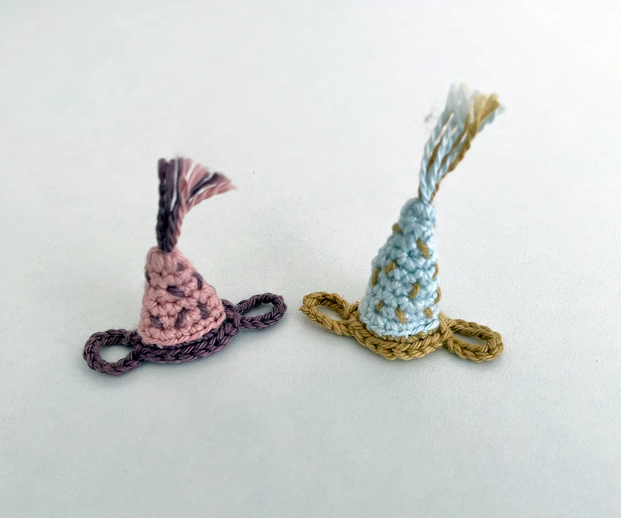 Miniatyr – Virkade partyhattar till mamma / pappa, storasyster / storebror mus, 2-pack hattar