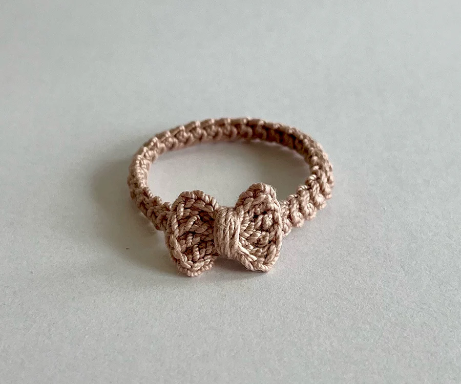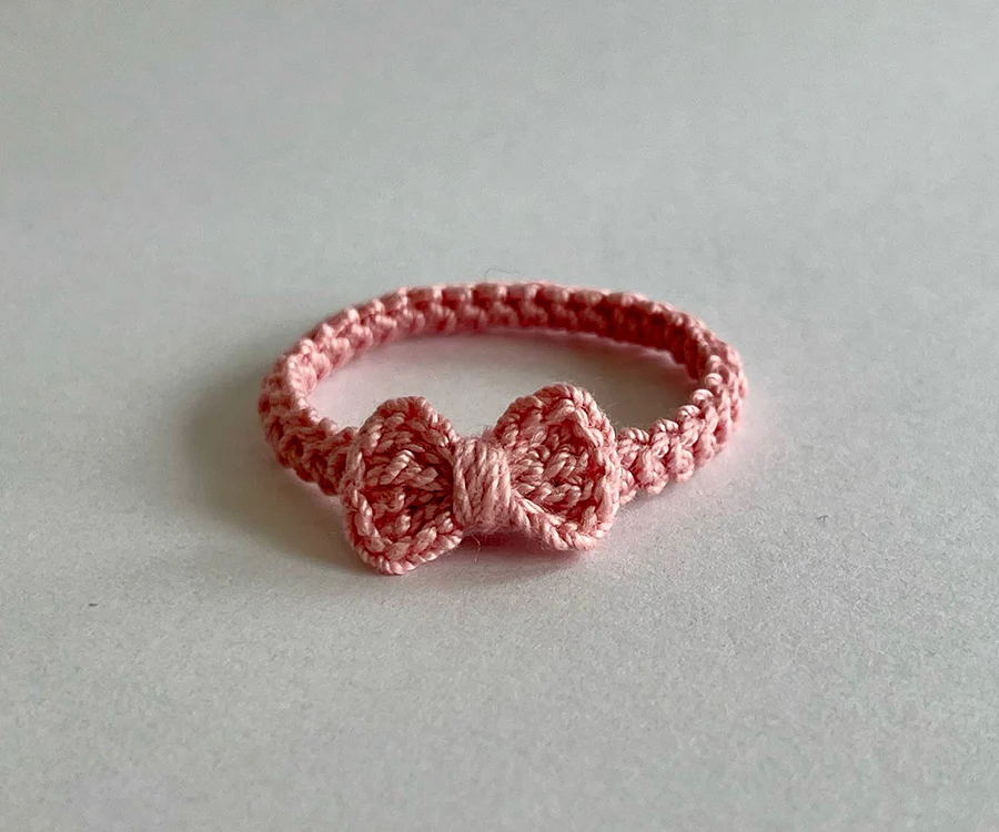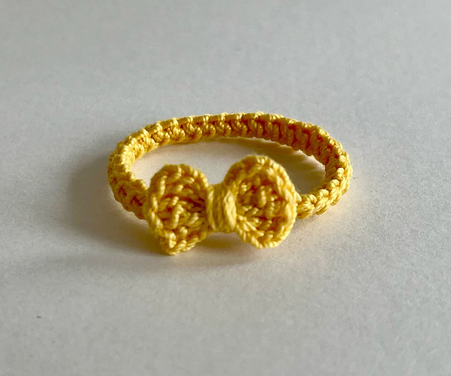 Miniatyr – Virkat hårband till storasyster mus med rosett, finns i flera olika färger