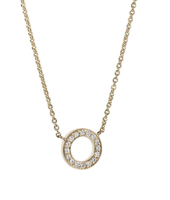 Halsband i 18k guld med en diamantcirkel.