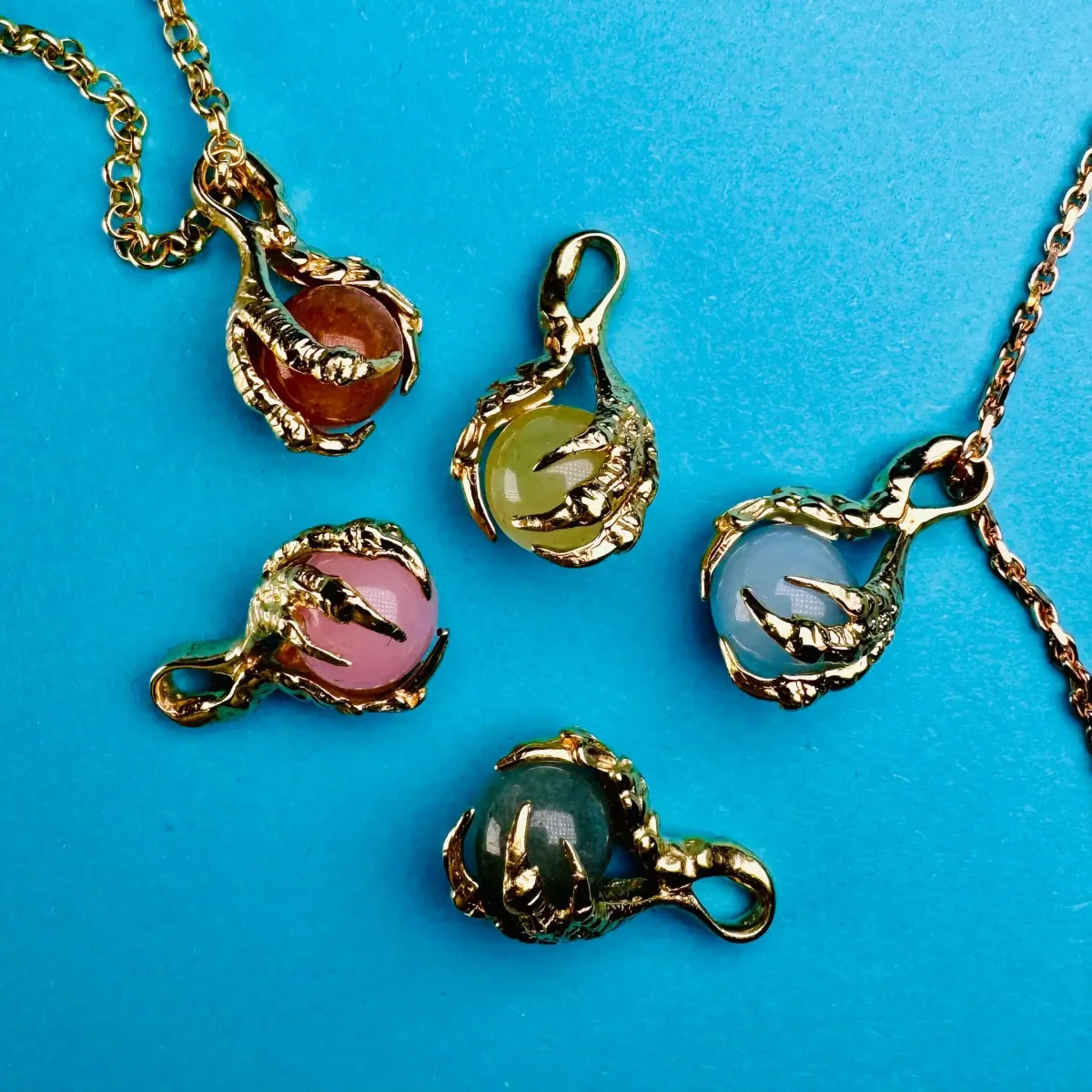 Jag gör varje berlock själv och därför kan dem skiljas lite åt i utseende. Klon håller i en äkta sten.