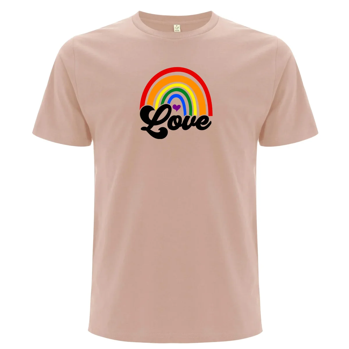 Ett enkelt men viktigt ord: LOVE. Denna unisex T-shirt med regnbågsmotiv sprider ett budskap om universell kärlek och acceptans. Perfekt året om.