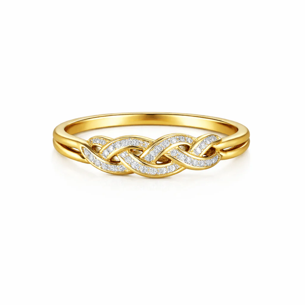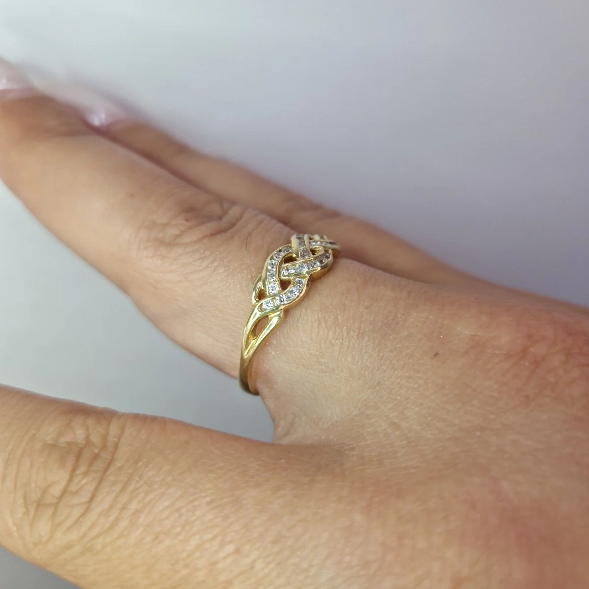 Artnr. BEG23924-5RING Beskrivning:Snygg ring flätad design 18k guld med kristaller. Information:18k GuldVikt: 3 gramStorlek: 19,5mmBredd: 6,6mmStenar: Cubic zirkonerLeverans inom 1-4 dagar