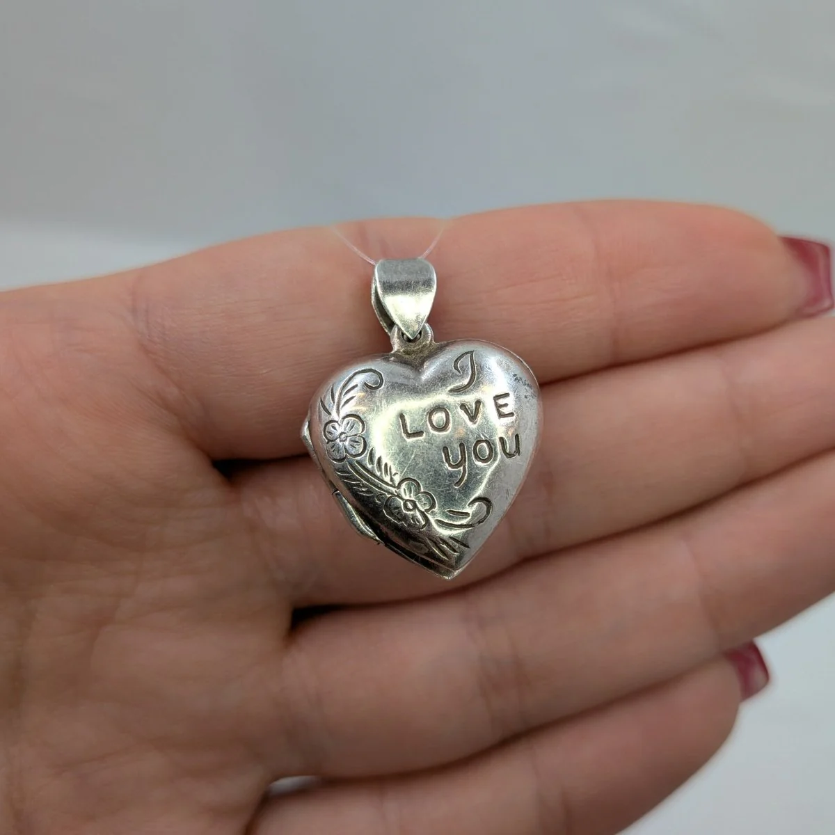 Hängsmycke medaljong i äkta silver. I from av ett hjärta med fina detaljer och texten ” I love you”