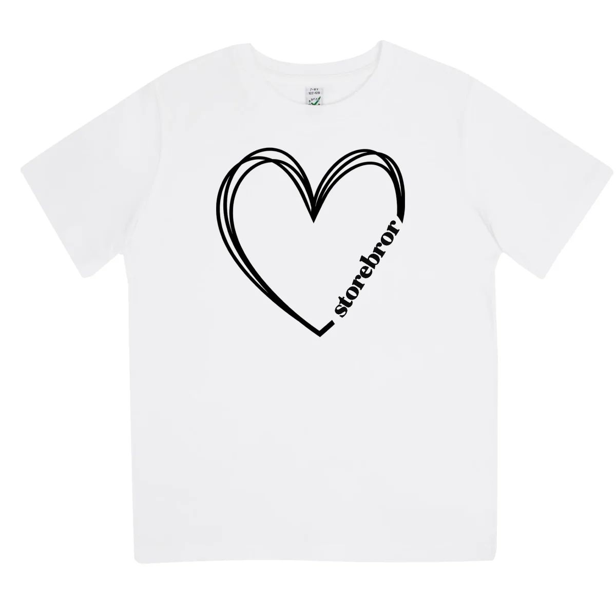 En fin hjärtdesign för stolta storebröder. Perfekt vid gravidavslöjande, familjefoto eller som present när lillasyskonet anländer. Stilren och lättmatchad barn t-shirt som snabbt blir en favorit.
