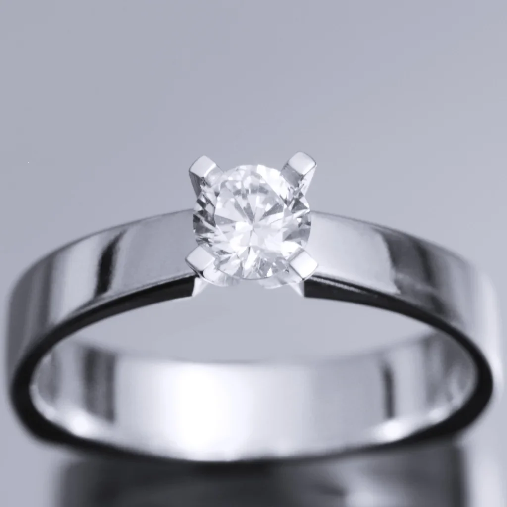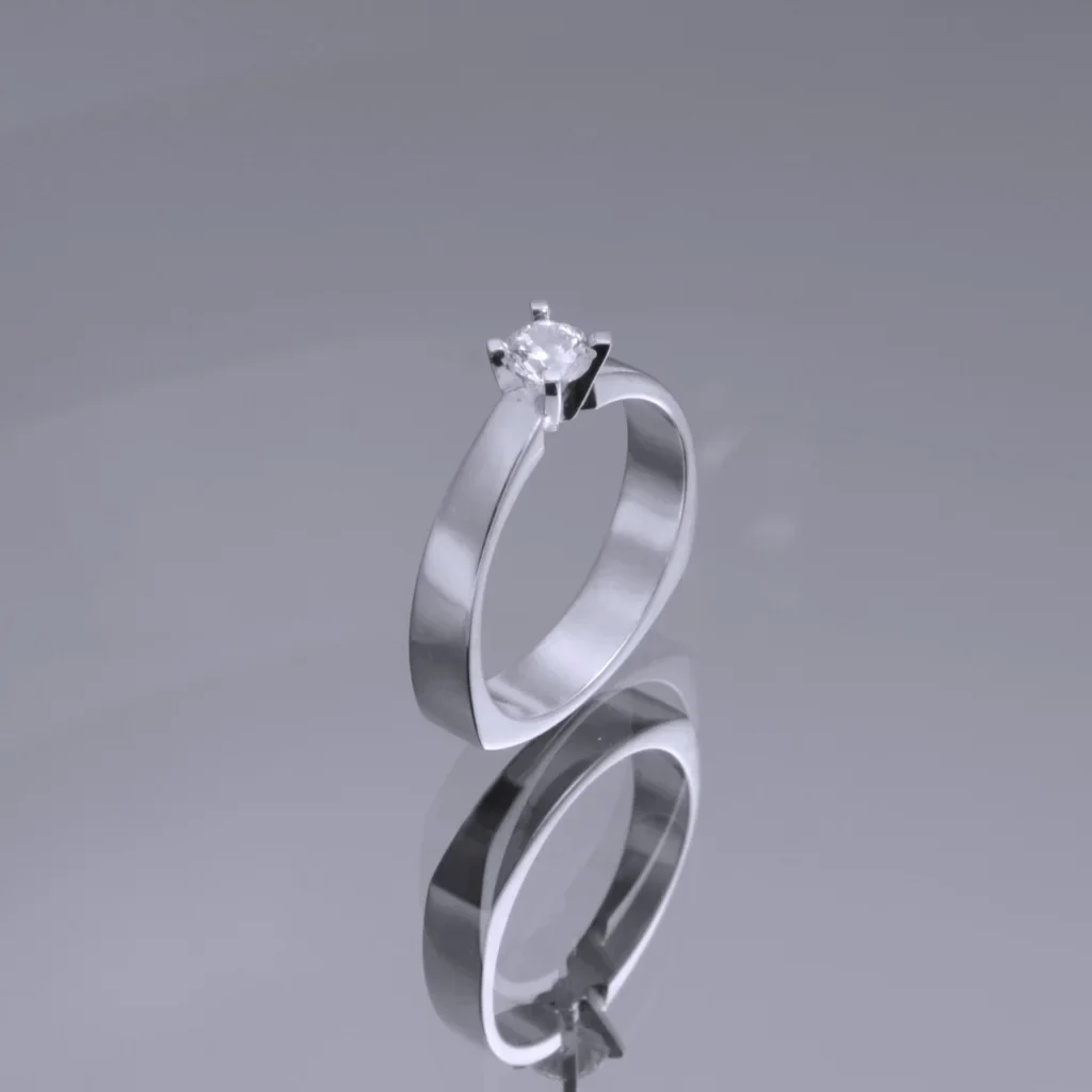Solitär ring i 18K vitt guld med 1 st rund briljant 0.4 ct TWSI från serien SuperNova. Denna ring har en spännande form som upplevs som modern och samtidigt klassisk. Ca 4.5 mm bred i strl ø 17 mm.