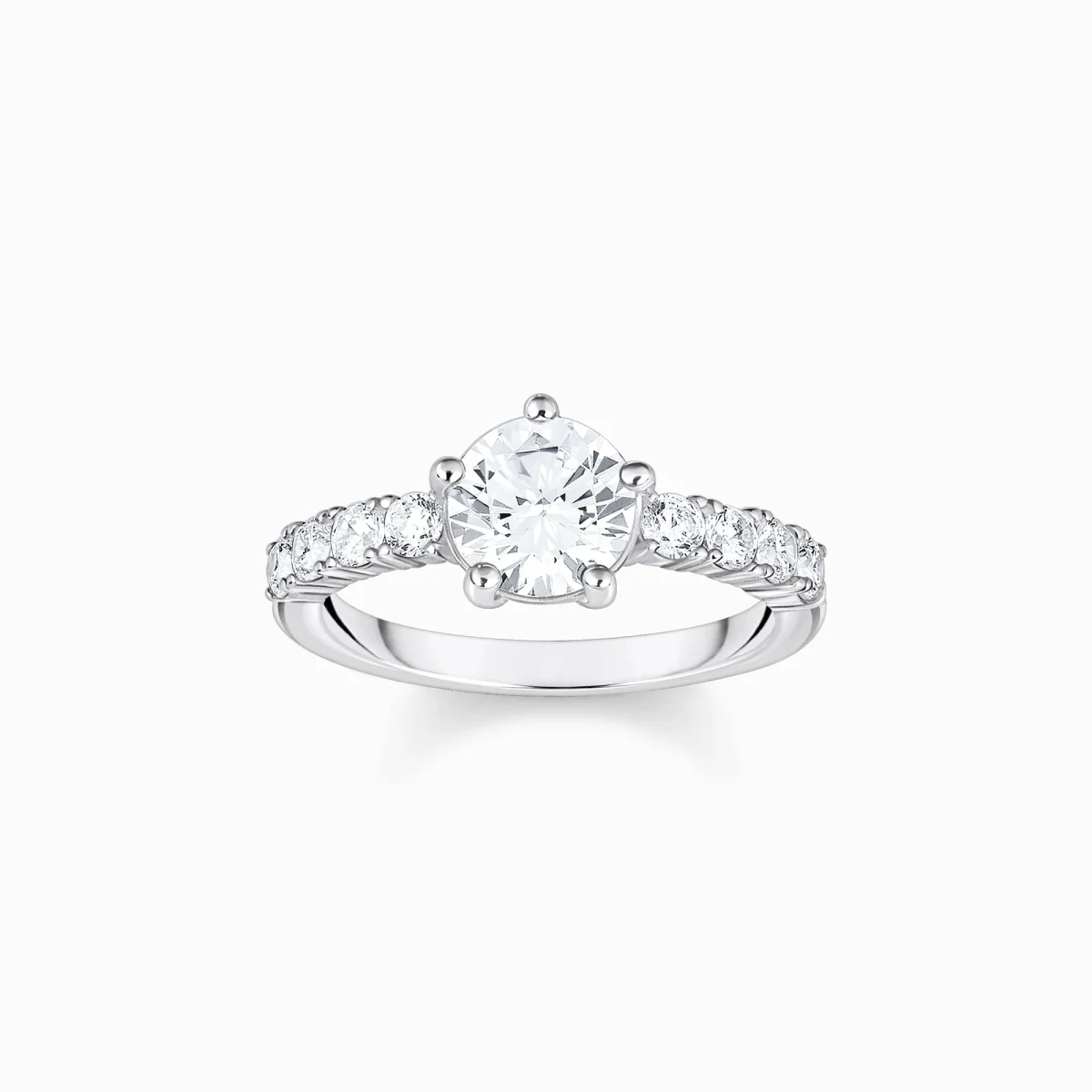 Thomas Sabo”Solitärring i silver med stor zirkoniasten och små stenar”Ring
