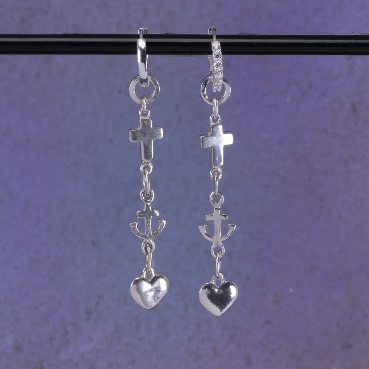Design: Vertikalt örhänge med kors, ankare och hjärta