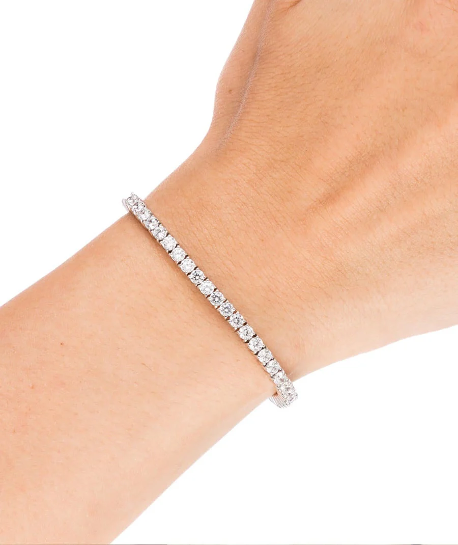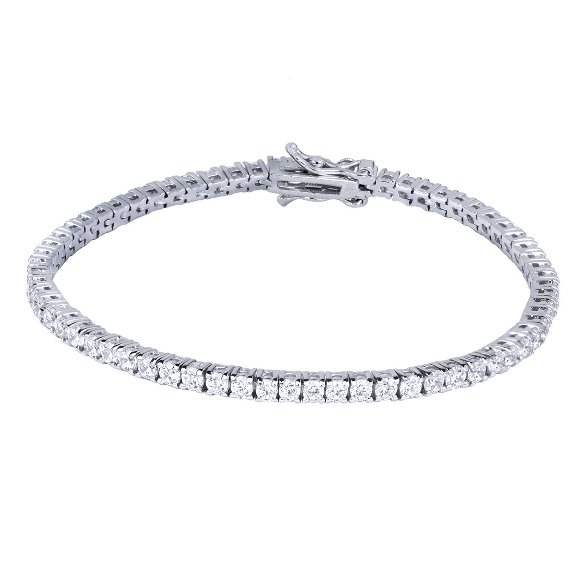 Detta armband från “Signature Collection” tillverkat av 925 sterlingsilver pläterat med platina, tillverkat enligt högsta kvalitetsstandarder för att säkerställa exceptionell glans och hållbarhet. Infattat med vita AAA-klassade kubiska zirkoniastenar på 2,5 mm i fyrklädd infattning, med en intensiv briljans som nästan inte går att skilja från diamant. Ett lyxigt smycke för vardagsbruk.