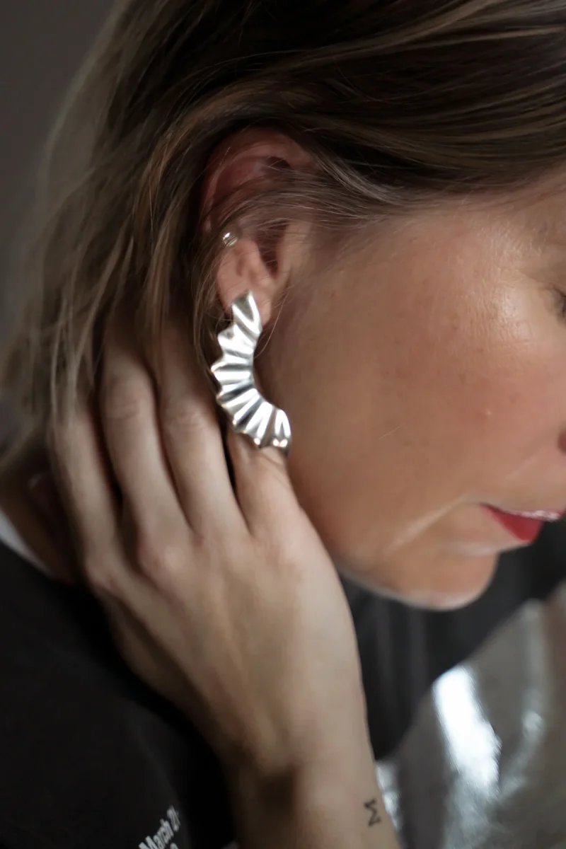 Stora vackra silverörhängen med böljande former designade av Mila Silver.